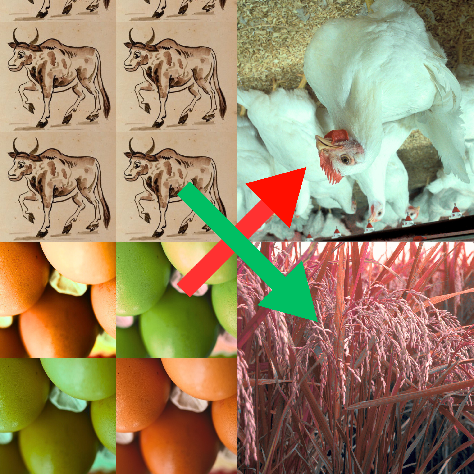 BREAD $2.26/lb▲ FLOUR $0.55/lb▲ RICE $1.08/lb▲ MILK $3.71/gal▲ EGG $2.71/doz▼ BANANA $0.66/lb▼ TOMATO $1.84/lb▲ BEEF $9.12/lb▼ CHICKEN $2.63/lb▼